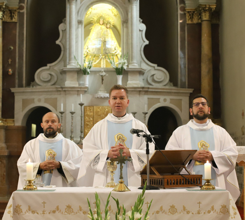 A szentmise kezdetére megérkezett Barics Gábriel atya, a pécsi horvát nyelvű szentmisék felelőse, valamint a nap vendége és a szentmise főcelebránsa, Almási Róbert is Horvátországból. Homíliája elején elmondott egy történetet egy elveszett, elkóborolt fiúról, akit szülei találkozóra hívtak egy város egy bizonyos pontjára, megbocsátást ígérve neki. Mikor odaértek, egy fiú helyett közel hétszáz hasonló korú fiút találtak, akik haza akartak térni és megbocsátást kapni. A zarándokokkal is valahogy így van: