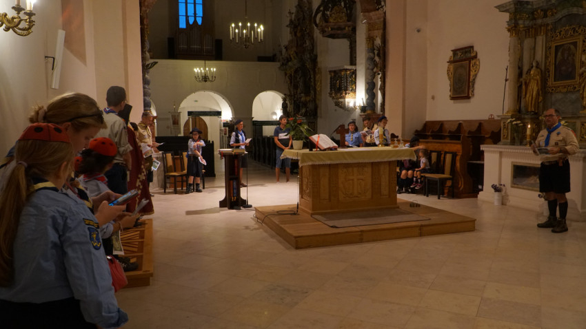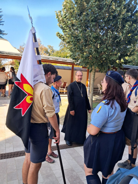A Szent Liturgiát követően Mosolygó Péter atya, a kegytemplom igazgatója bemutatta a cserkészeknek a bazilikát, a fatemplomot és a rendházat.