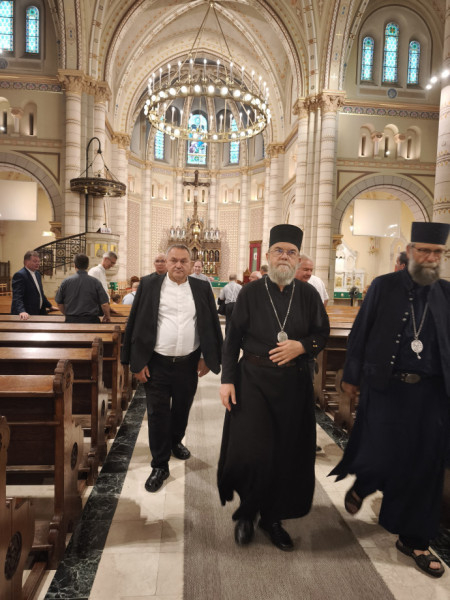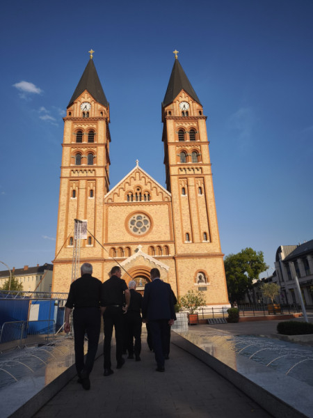 Végül megtekintették a római katolikus székesegyházat, amelyet Palánki Ferenc debrecen-nyíregyházi megyéspüspök kérésére Felföldi László pécsi megyéspüspök mutatott be püspöktársainak, aki három évig plébánosa, hat évig pedig káplánja volt a Magyarok Nagyasszonya-társszékesegyháznak. A templomban az esti szentmisére betérő hívek meglepődve és kitörő örömmel köszöntötték szeretett „Laci atyájukat”.