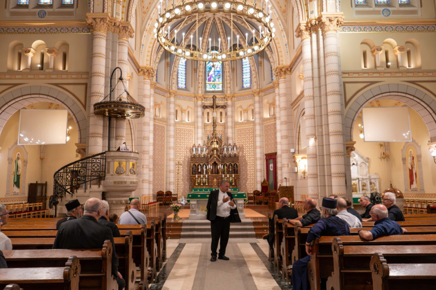 Ezután átvonultak a közeli Szent Miklós-székesegyházba, hazánk talán legszebben kifestett görögkatolikus templomába, melyet Szocska Ábel nyíregyházi megyéspüspök mutatott be nekik.