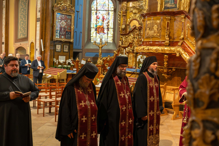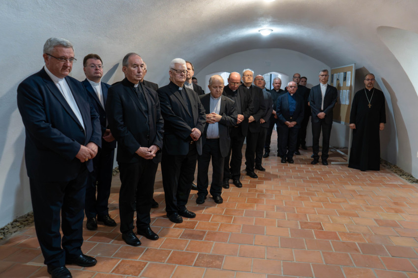 Máriapócsra visszatérve a püspökök megemlékező szertartást, úgynevezett pannichidát végeztek az augusztus 13-án elhunyt Keresztes Szilárd nyugalmazott hajdúdorogi megyéspüspök lelki üdvéért, majd az altemplom kriptájában imádkoztak a sírjánál.