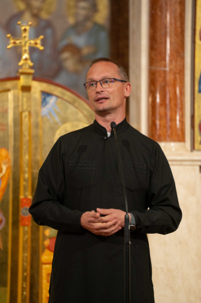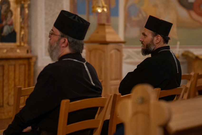 Szombaton reggel – Orosz Atanáz püspök jelenlétében – Szent Liturgiát végzett a székesegyházban Orosz István Mokiosz atya, mellette szolgáltak az oltár körül a zarándoklatba aktívan bekapcsolódó paptestvérek is.