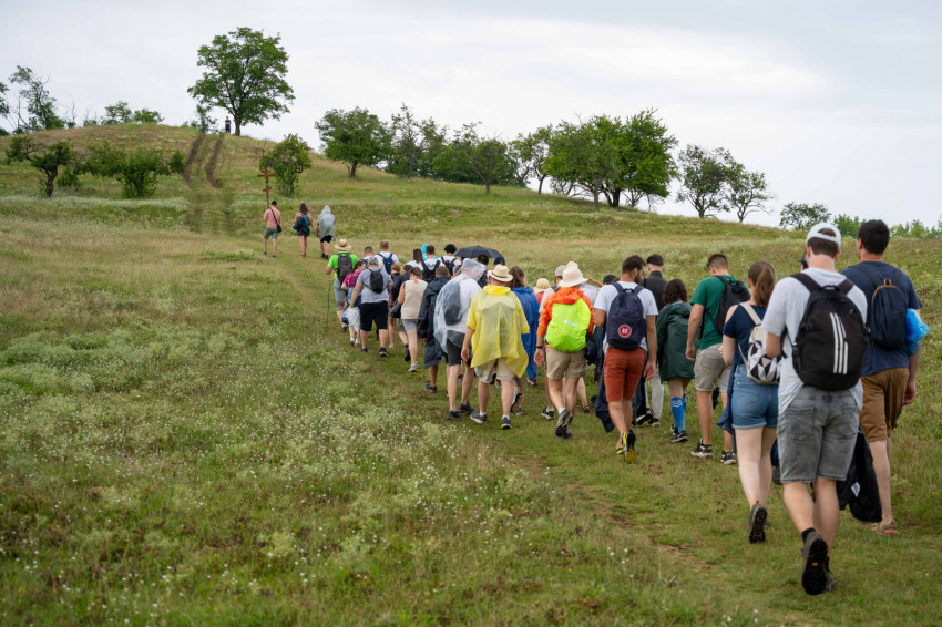 A kitérő nem csak a megtett kilométereket szaporította. A domb tetején húszperces megállót tartottak a fiatalok, hogy meghallgassák Kovács Csaba nyíregyháza-rozsrétszőlői parókus elmélkedését.
