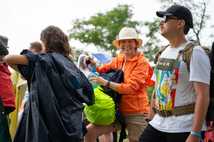 Esőben érkeztek Nyíregyháza határába a 22+ zarándoklat résztvevői július 21-én. Ennek ellenére a tervek szerint felkapaszkodtak a szántó- és legelőföldek ölelésében található Geri dombra, a település legmagasabb pontjára, egy kunhalomra.