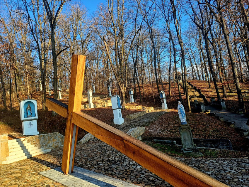 – Igen. Ugyancsak a kegytemplom mögötti dombon, a keresztút végén lévő Szent Kereszt-kápolnától indulva bal oldalon találhatók a dicsőséges út stációi, amelyek Jézus feltámadása utáni dicsőséges megjelenéseit követik végig egészen pünkösdig. Sajnos a második világháború után az itt állomásozó orosz katonák, mielőtt 1952-ben hazamentek volna, a tizennégy stációból hetet ledöntöttek. Ezeket azóta sem állított helyre senki. Igaz, hogy a kommunista diktatúra éveiben nehéz lett volna a rongálást helyrehozni, az itt lakó ferencesek pedig idősek, betegek voltak, nem vállaltak egy ilyen nehéz munkát. Remélem, hogy a Jóisten ad annyi egészséget, hogy ezt a felújítást még befejezzem. Ha összegyűlik rá a szükséges pénzösszeg, egy év alatt végzünk a felújítással; cég, mérnök, munkás lenne hozzá. A felújítás körülbelül 200-250 ezer lejbe kerülne. (…) A stációkból elvileg hetet fel kell újítani, hetet pedig újonnan készíteni. De mivel a régieknek nincs megfelelő alapjuk, jobb volna a még álló hét stációt is lebontani, és szilárd alapra újra felépíteni. Akkor legalább 150–200 évig nem kellene javítani.