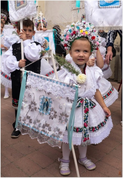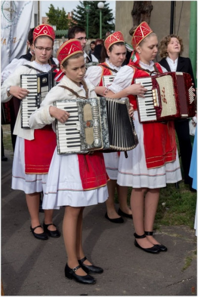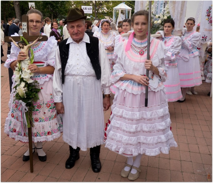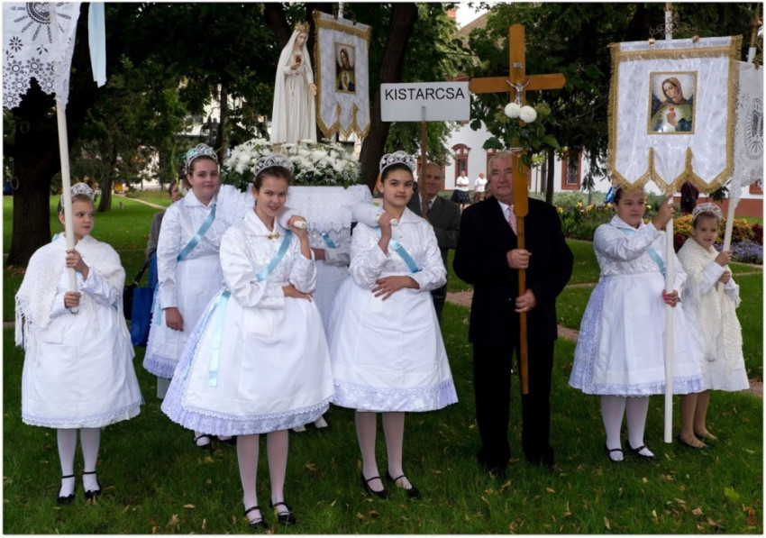 A búcsú sok ezer résztvevőjét, köztük a közel hatvan, népviseletbe öltözött, Mária-szobrot hozó egyházközségi csoportot a plébánia több, mint kétszáz rendezője fogadta és segítette.