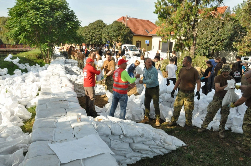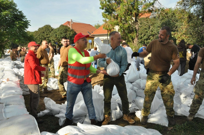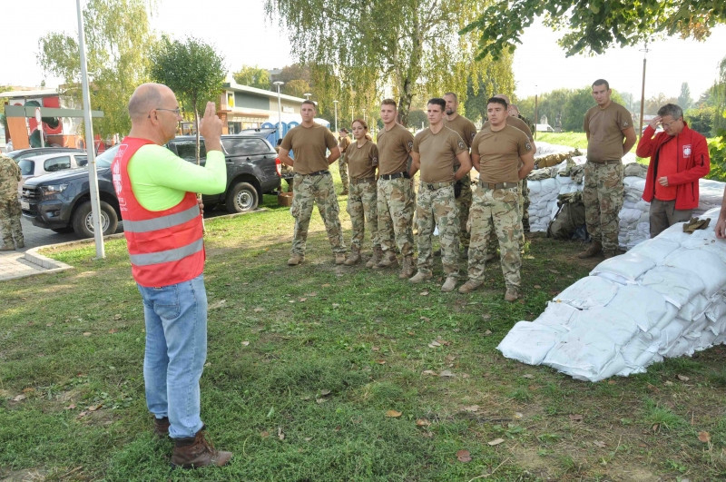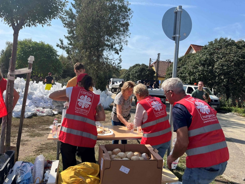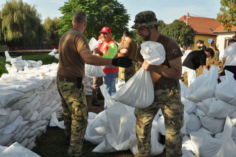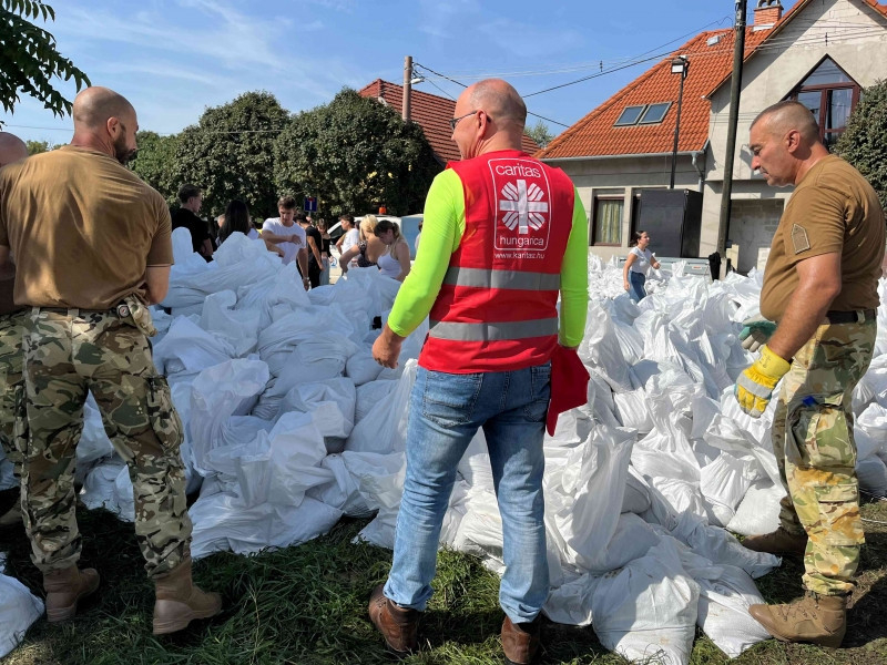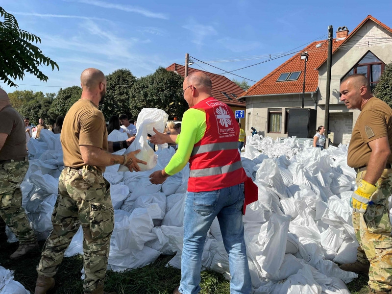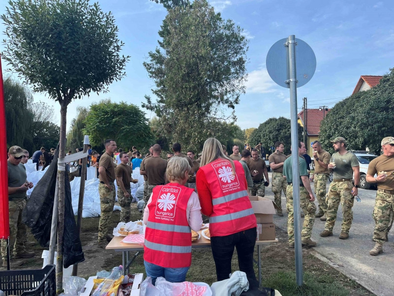Az odarendelt katonák számára a jelen lévő alezredes először püspöki áldást kért, majd megkezdték a homokzsákok töltését és pakolását. A karitász nyolc önkéntese ellátópontokat állított fel, ahol kávét, teát és szendvicset biztosítanak a töltések megerősítésén dolgozóknak, valamint a karitász a homokzsákok szállításában is tudott segíteni. A munka csütörtökön a patak másik oldalán folytatódik.