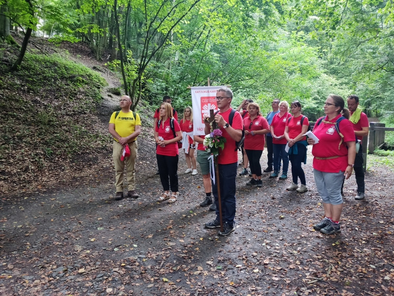A karitászközösség zarándokénekeit a Rimóci Szent Erzsébet karitászcsoport tagja, Virágné Márta vezette – a közel tízórás vonulás énekes, imádságos zarándoklássá vált.