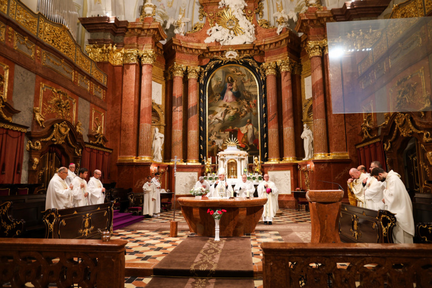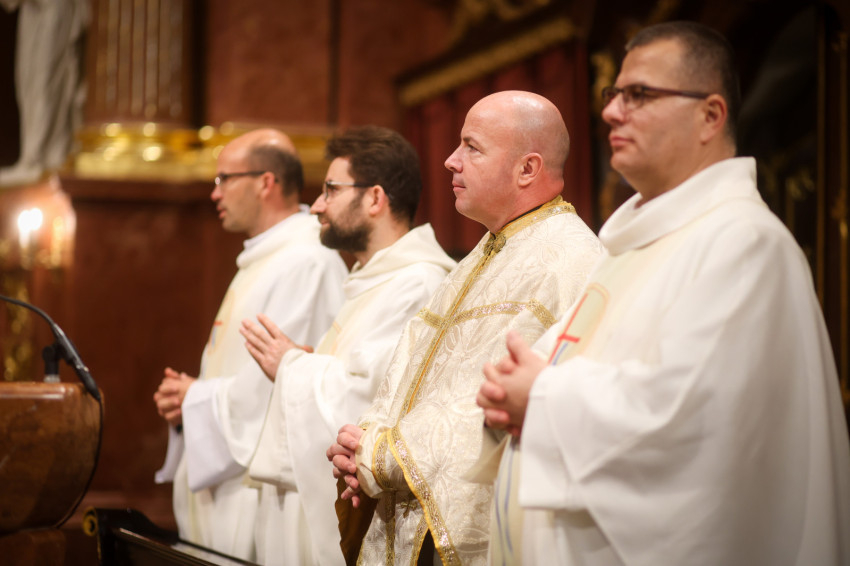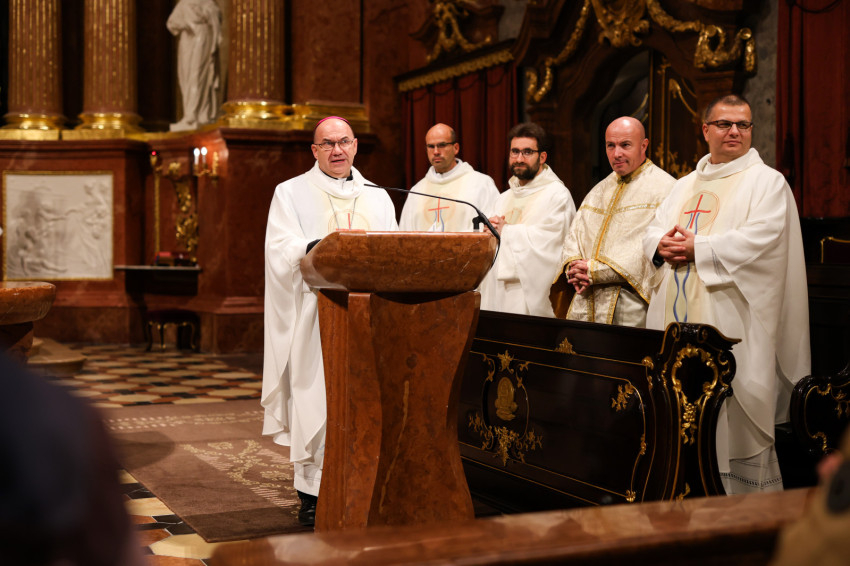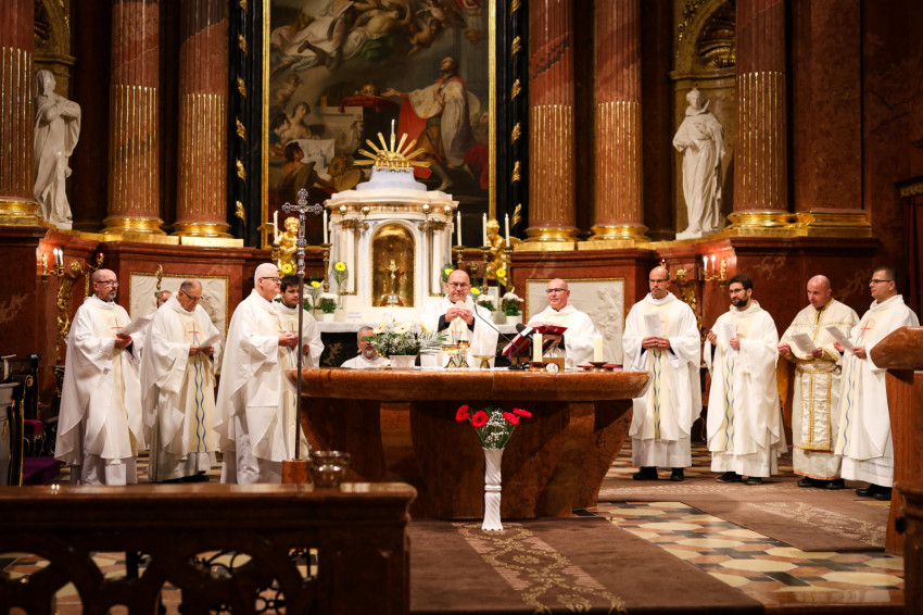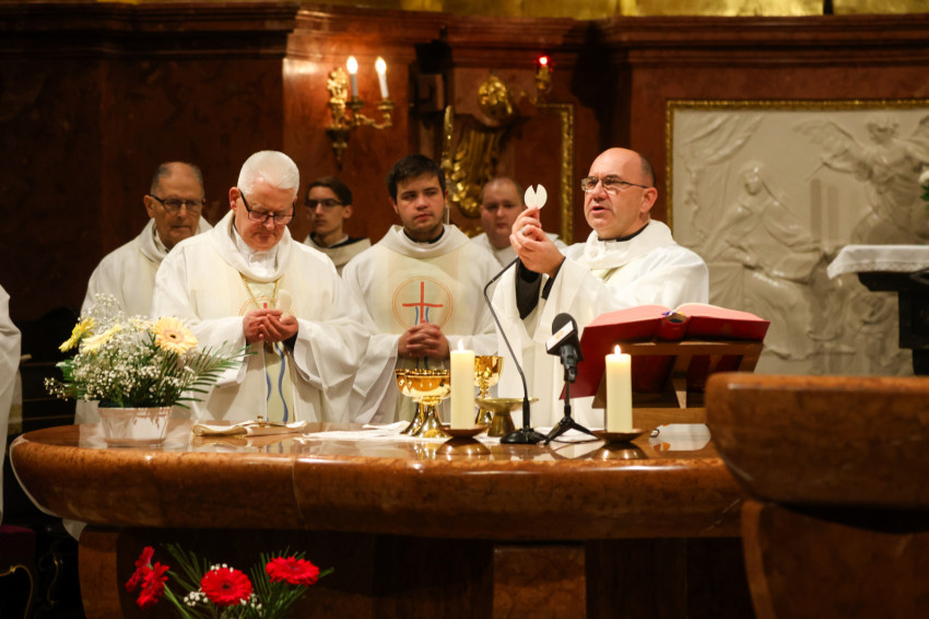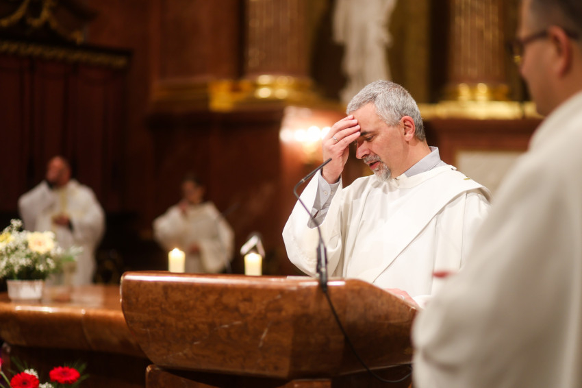„Szüntelenül kell imádkozni, és nem szabad belefáradni” – kezdte homíliáját Marton Zsolt. – Minden tevékenységünk kiindulóforrása és végcélja a szentmise, és ez igaz az imádságra is. Életünk kerete az imádság.