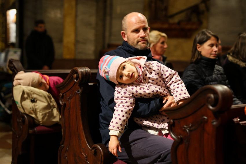 A homília után következett a lelki adoptálás melletti elköteleződés kimondása. Több mint tizenöt ember vonult az oltár elé, fiatalok és idősebbek, akik vállalják, hogy kilenc hónapon át imádkoznak egy magzatért, akit az abortusz veszélye fenyeget, így őrködnek a megfogant gyermek élete fölött.