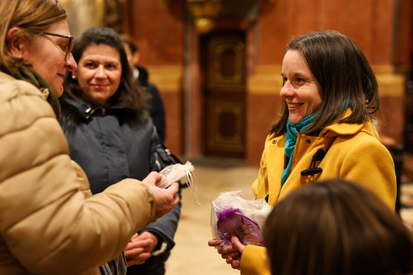A lelki adoptálás mellett újonnan elkötelezettek a szentmise végén kis csomagot kaptak az imádsággal és egy magzat szobrával.