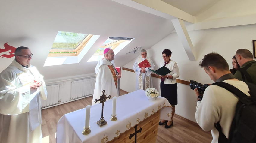 Az imaterem alapító okiratát a megáldás szertartását követően a főpásztor átadta Csordás Gáborné igazgatónőnek.