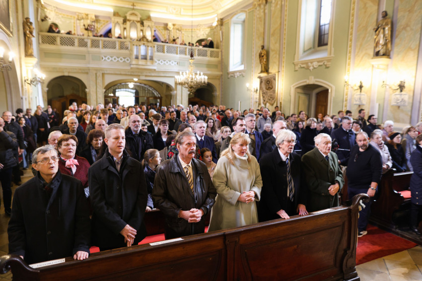 A szentmise elején Ailer Gáspár plébános köszöntötte az egybegyűlt híveket, majd röviden felidézte a Szent Lipót-templom több mint két és fél évszázados történetét – a gyökereket, amelyekből ez a közösség ma is táplálkozik.