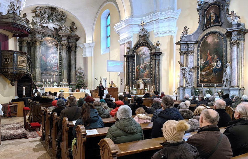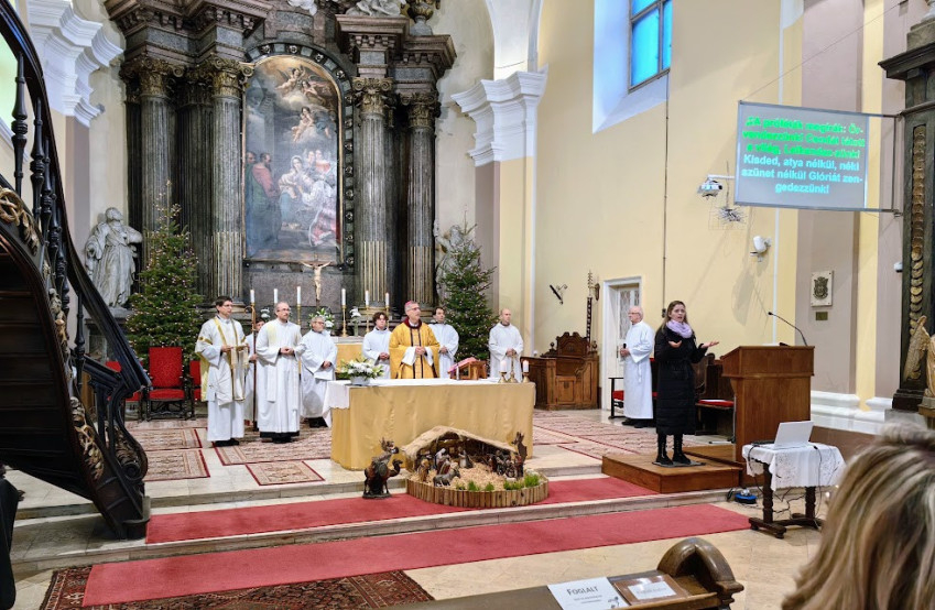 Nagy zajhoz szokott fülünket szent csend üti meg, ahogy a szikrázó napsütésben fürdő Döbrentei térről belépünk a Szent Katalin-templomba, pedig már csaknem tele van: az ország minden részéről érkeztek hallássérült hívek, hogy amint több mint negyven éve minden évben, idén is püspöki jelenlét mellett ünnepeljék megváltónk, Jézus Krisztus születését. A kezdetekkor Lékai László bíborossal karácsonyoztak Szent István első vértanú napján, tavaly, a jubileumi év elején Erdő Péter bíborossal, idén pedig Martos Levente Balázs segédpüspökkel, a Központi Papnevelő Intézet rektorával.