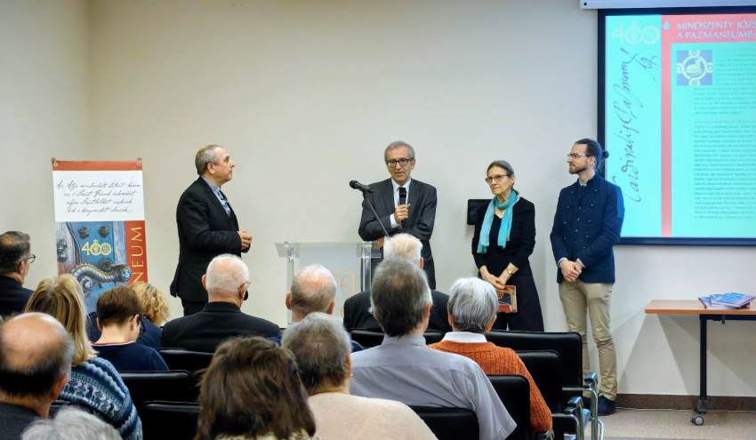 Az érdeklődő közönséget Varga János, a Pázmáneum rektora köszöntötte a tárgyi részletekben gazdag, hiánypótló kiadvány megjelenése alkalmából. „Odaadással, lelkesedéssel készült a könyv, az intézmény négy évszázados múltját bemutató munka valódi közös alkotás, amely a szeminárium viharos történetének és sok ezer pap életútjának állít emléket” – fogalmazott a rektor, aki szerzőként maga is részt vállalt a könyv létrejöttében: ő dolgozta fel Mindszenty Józsefnek az intézményben töltött időszakát.