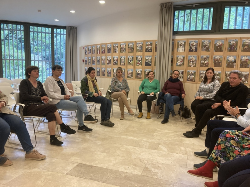 A péntek esti megérkezés után színes képek segítségével mondtuk el egymásnak, a „hogy vagy?” körben az éppen aktuális lelki és testi állapotunkat, illetve azt, hogy mit és hogyan hagytunk otthon, ennek nehézségeit és örömeit.