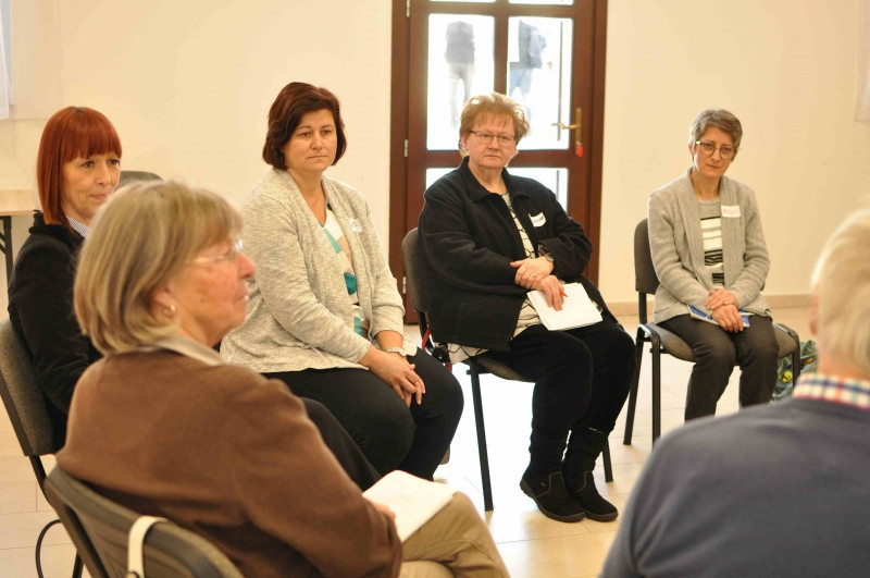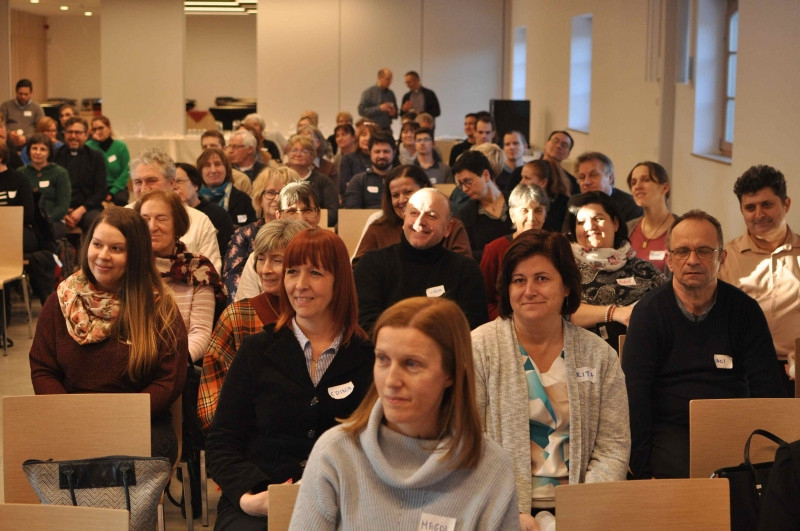 Az ebédszünetet megelőzően közös szentségimádáson vettek részt a jelenlévők. Majd újra kiscsoportokba szerveződtek, ahol az eddigi ima-katekézis alkalmakról volt szó. Az előkészítéssel, lebonyolítással kapcsolatos örömök, nehézségek megosztása mellett a gyakorlati tapasztalatok átbeszélésére is sor került és megosztották egymással jó gyakorlataikat. Ezután rövid fórummal folytatódott a program.