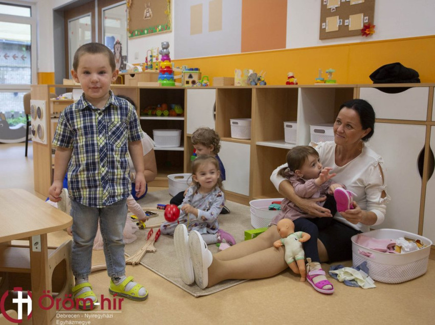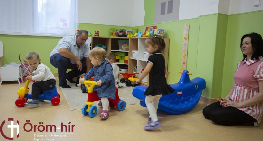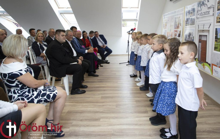 Dienes Béla intézményvezető azt hangsúlyozta, hogy az egyházi bölcsőde nem csupán egy épület: az itt megélt keresztény értékek segítenek abban, hogy a gyermekek harmonikus, szeretetteljes környezetben nevelkedjenek. Elmondta: a projekt megvalósulását két vissza nem térítendő támogatás, uniós forrás, valamint magyar állami költségvetés biztosította. A bölcsőde megépítésekor törekedtek a klímatudatos megoldásokra és az energiahatékonyság növelésére, ezért napelemeket is telepítettek, amelyek megtermelik a működéshez szükséges energiát, valamint okosvilágítást is terveztek az épületbe.
