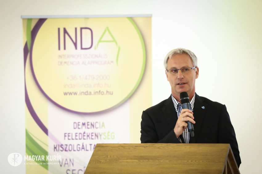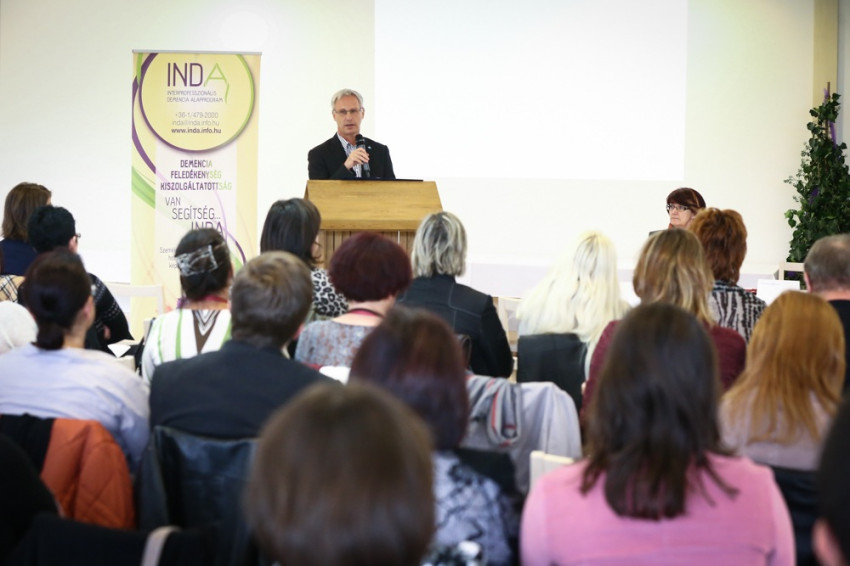 A szentmisét követően Süveges Gergő, az INDA projekt szóvivője köszöntötte a konferencia résztvevőit, majd levetítették azt a két kisfilmet, amelyet a program keretében készítettek abból a célból, hogy felhívja a társadalom figyelmét a demencia jelenségére.