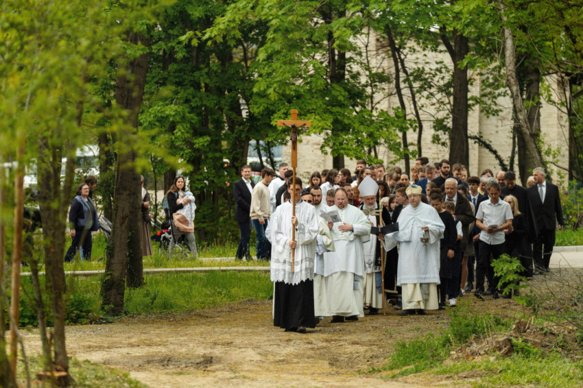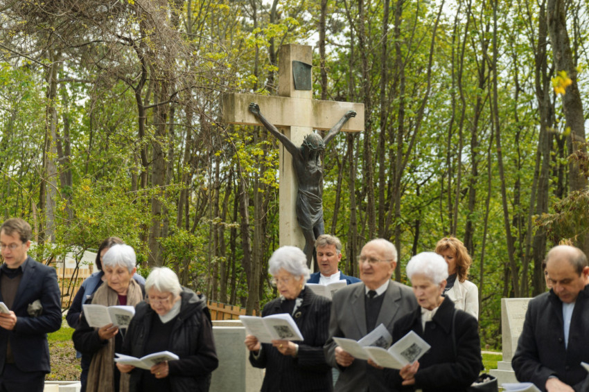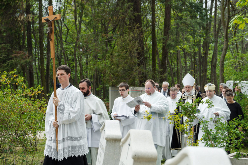 A műsor után liturgikus menet indult az iskolából a fácánosi premontrei sírkertbe, a premontrei szerzetes pap költő, Mécs László ravatalozához, akit először 1978-ban Pannonhalmán, a bencés főpátság Nagyboldogasszony-kápolnájában temettek el.