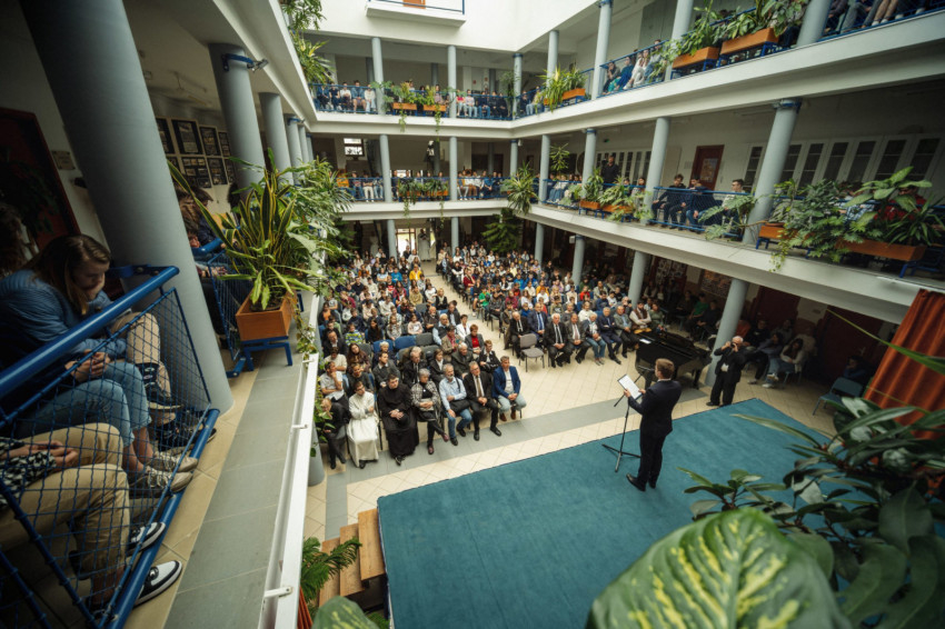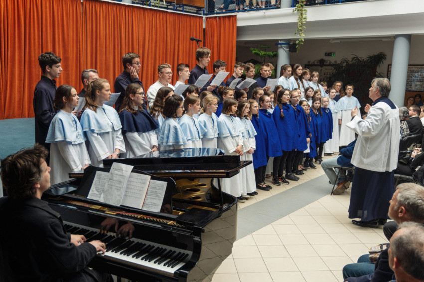 Az ünnepségen az iskola kórusa a 42. genfi zsoltárt („Mint a szép híves patakra…”), Bach Már nyugosznak a völgyek, valamint Lodovico Vidana Salve Regina című művét énekelte. Zongorán közreműködött Farkas Domonkos; vezényelt Kocsis Csaba.