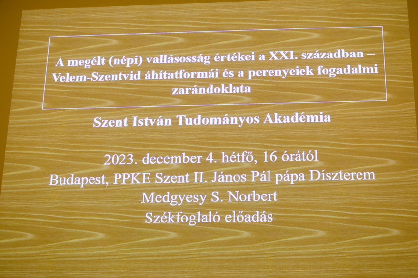 Medgyesy S. Norbert előadása során és a Szent István Tudományos Akadémia ez évi közgyűlése keretében a Perenyei Hagyományőrző Egyesület (Baumgartner Attila, Baumgartner András, Baumgartner Ferenc és Krizmanich László) énekelt Hollósi László előénekes és egyesület-vezető irányításával szentvidi zarándok-, továbbá helybeli adventi és karácsonyi népénekeket. Az ünnepkörökhöz kapcsolódó archaikus népi imádság-részleteket a szintén perenyei Reményi Rebeka és Varga Darinka szólaltatták meg.