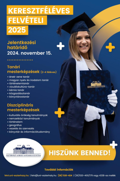 Tanári mesterképzések (2–4 féléves): ének-zene tanár, magyar nyelv és irodalom szakos tanár, történelemtanár, vizuáliskultúra-tanár, kémiatanár, közgazdaságtan-tanár, könyvtárostanár
