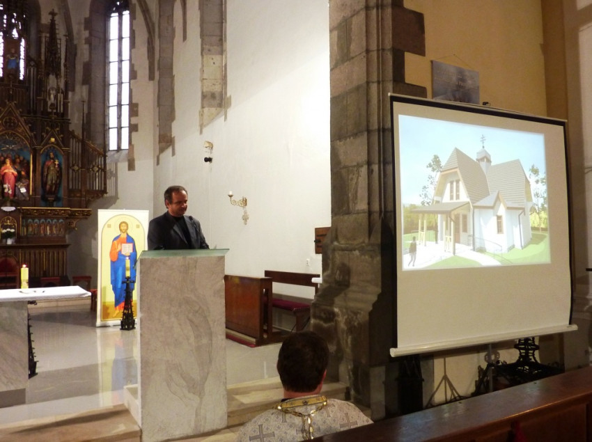 A szertartás kezdetén Marko Rozkoš megbízott lelkipásztor, irodaigazgató köszöntötte az egybegyűlteket, és ismertette a formálódó közösség és az épülő templom történetét. A megyéspüspök ezt követően megáldotta a jelenlévőket, a város által ajándékozott telket és az alapkövet. „Az ősz a vetés, a vetőmag földbe kerülésének az ideje. Minden földműves bizalommal vet, azzal a reménységgel, hogy a mag idővel meghozza a maga termését. A földbe helyezett kő is remélhetőleg rövid időn belül csodás templommá lesz, amelynek közelében lelkészlakás és közösségi ház is épül” – fejezte ki reményét a főpásztor. A népszámlálási adatok szerint az alig négyszáz lelket számláló görögkatolikus közösség aktív tagjai tudatában vannak annak, hogy a templom Isten jelenlétének helye, amit idővel a közösségnek kell majd megtöltenie élettel.