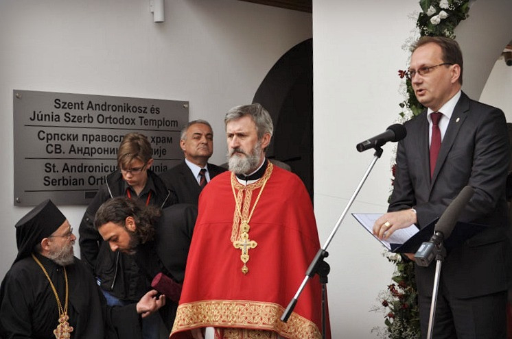 Az ünnepségen a Pécsi Egyházmegye részéről Garadnay Balázs helynök vett részt, aki tolmácsolta Udvardy György pécsi megyéspüspök jókívánságait, és átadta az egyházmegye ajándékát is. A szerb kápolna megépítésére a katolikus templomokban is gyűjtöttek.
