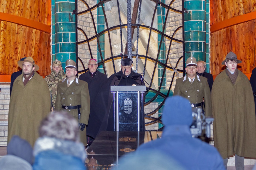 A hideg, metsző szél ellenére sokan tartották fontosnak, hogy a felújított kápolnánál leróják kegyeletüket a hősök előtt. Spányi Antal megyéspüspök megáldotta a gyönyörűen felújított kápolnát, majd a történelmi egyházak képviselőinek imádságai után fellobbant a doni hősök előtt tisztelgő emléktűz.