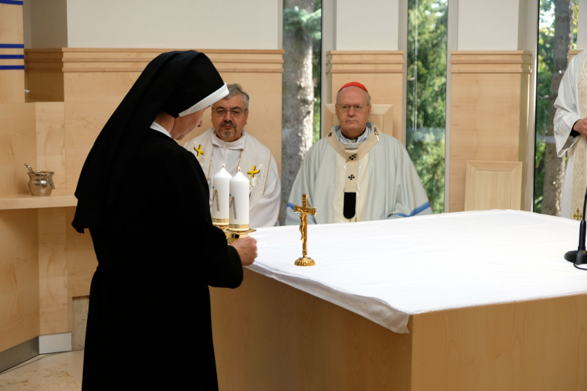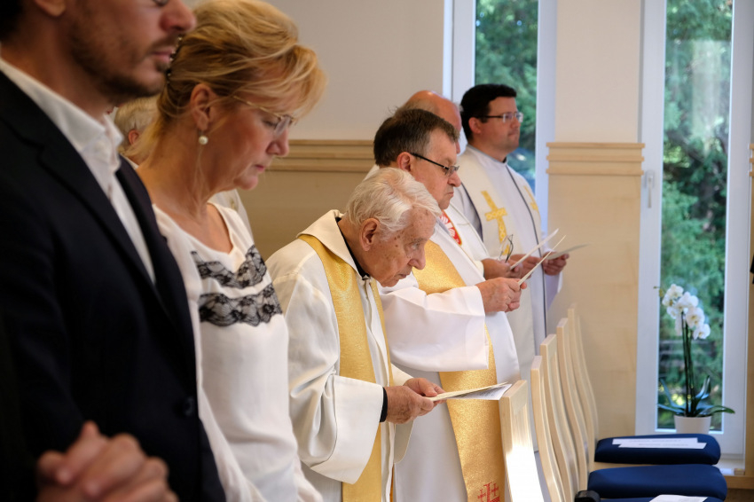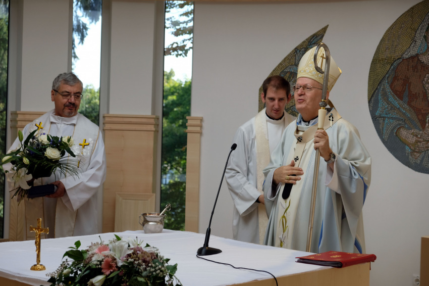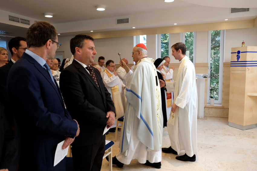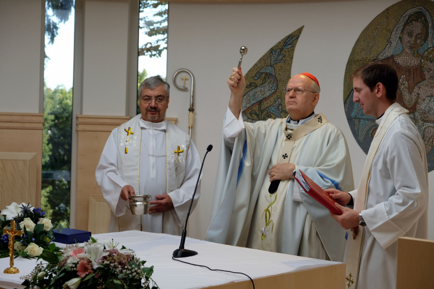 Köszönet és elismerés illeti mindazokat, akik ennek a kápolnának a létrejöttét lehetővé tették, akik hozzájárultak, hogy itt a lelkipásztorkodás ne csupán vigasztaló szót jelentsen, hanem magának Krisztusnak az ellenállhatatlan erejét közvetítse az emberek felé. Lakjék köztünk az Üdvözítő mindennap, és árasszon el minket áldásával!” – zárta beszédét Erdő Péter bíboros.