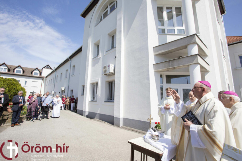 A szentmise és a beszédek után az ünnepség az udvaron a megáldási szertartással folytatódott. A főpásztor megáldotta az épületet, a kialakított tetőtéri szárnyat, az otthon lakóit és munkatársait.