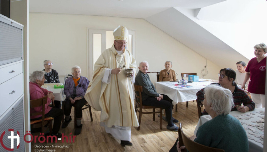 Palánki Ferenc püspök a szentmise homíliájában a felolvasott evangéliumi szakaszról (Jn 3,7–15), Nikodémus és Jézus párbeszédéről fejtette ki gondolatait. Az idős Nikodémus, aki a vének tanácsának vezető embere volt, éjszaka kereste föl Jézust. Talán azért éjszaka, hogy ne derüljön ki látogatása. De egy mélyebb üzenete is lehet, amely az idősek otthonában élők számára nagyon is aktuális – mondta a főpásztor. – Az idős ember éjszaka nem mindig tud aludni, ezért az élet dolgain gondolkodik, emlékezik a történtekre, mi az, ami a mulasztásai vagy az erényei közé tartozik. Számot vet az életével. De azon is szokott gondolkodni, hogy mi lesz, hogyan lesz, amikor vége a földi életének, hogyan fog odaérni a kapuhoz, átlépni rajta, talál-e ott valakit.