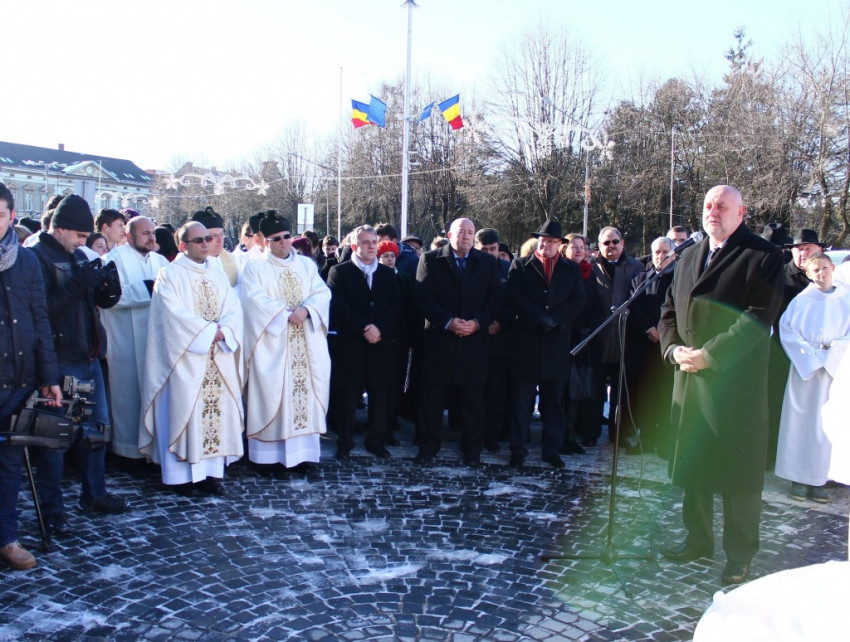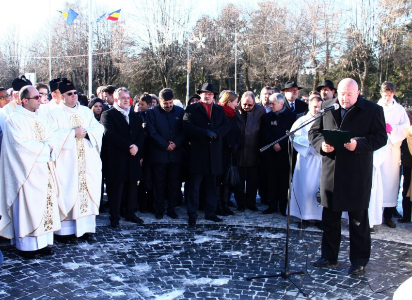Ezt követően az ünneplő közösség a székesegyház főbejárata elé vonult, ahol Maskulik Dávid, a Hám János Római Katolikus Teológiai Líceum 11/b osztályos tanulója verset szavalt, majd további beszédek hangzottak el Dorel Coica polgármestertől, Tilki Attilától, Szabolcs-Szatmár-Bereg megye országgyűlési képviselőjétől, Hegedűs Csillától, az RMDSZ nőszervezetének alelnökétől, Pataki Csaba szenátortól és Kereskényi Gábor képviselőtől. Ezután áldotta meg Schönberger Jenő püspök az új szobrot, majd koszorúzással és a Hám János-líceum kórusának énekével ért véget az esemény.