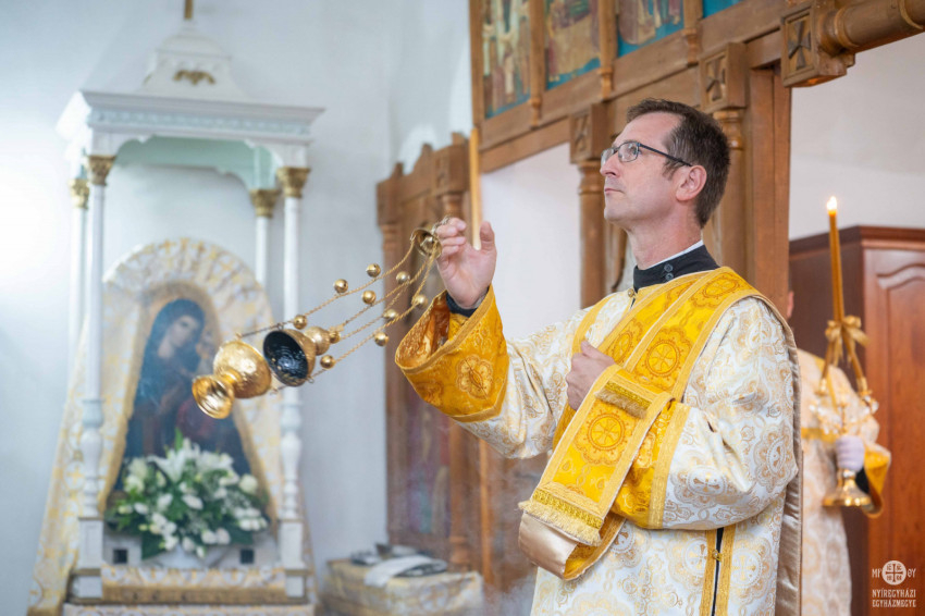 A Szent Liturgián a kerület papságával és néhány távolabbról érkezett atyával együtt imádkozott a házigazda, Seres Péter parókus.