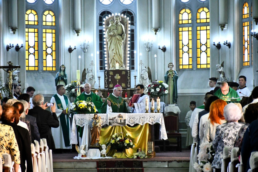 A szentmise kezdetén a jelenlévőket Jäger Béla plébános üdvözölte: „Megtiszteltetés számunkra, hogy elfogadták a meghívásunkat és együtt ünnepelhetünk. Kérjük a Jóistent, hogy Szent József, e templom és a plébánia védőszentjének közbenjárására áldjon meg mindenkit”.