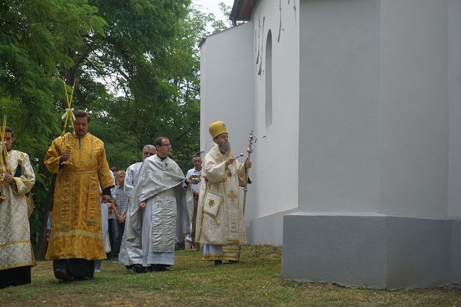 A templomszentelésen szent vértanúk ereklyéit helyezte el a püspök az oltáron, abban az antimenzionban, melyet nagycsütörtökön áldott meg. „A szent vértanúk emlékére kérem mindazokat, akik szolgálatot vállalnak ennek az egyházközségnek az életében, hogy azt az önfeláldozó, önzetlen szeretetet gyakorolják, amelyet a szentek mutattak annak idején a világnak” – mondta Orosz Atanáz. Hozzátette: „A lényeg a lelkekben van. Itt, ebben a felújított templomban a rendbe hozott kövekhez ezt a lelki többletet kell még hozzáadnunk, hogy az itt élő emberek újra higgyenek az életben, higgyenek az életet adó Istenben, és elvessék mindazt, amit egy hitetlen, elvetemült és elfajult nemzedék akar ránk erőltetni. Templomunk szépségében gyönyörködve igyekszünk mi is szép gondolatokat, szép jövőt tervezni magunknak és fiainknak, gyermekeinek, ehhez pedig hívjuk segítségül a kétezer éve is oly sok csodát tett megváltó Jézust.”