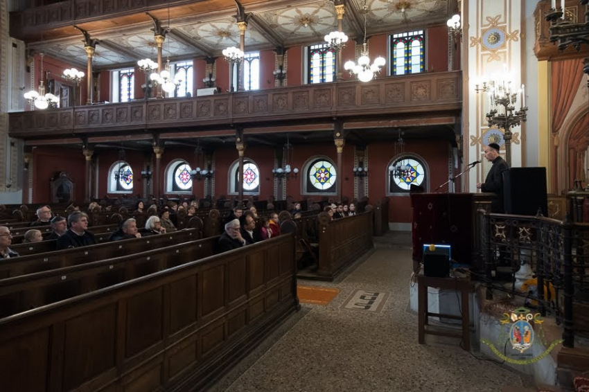 A megemlékezés a zsinagógában folytatódott Udvardy György pécsi megyéspüspök beszédével, aki az imádkozó embert és közösséget helyezte a középpontba. „Az imádság képes begyógyítani a múlt sebeit, és a hit erejével egyesíteni a jó erejét a jelenben” – fogalmazott a főpásztor.
