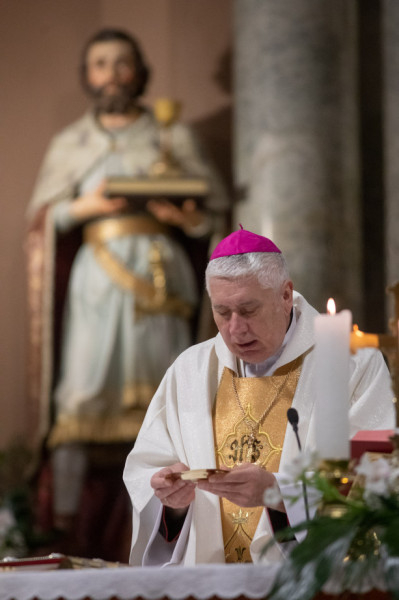 Jézus személye, az ő élete, tanítása, szenvedése, halála és feltámadása maradandó, nagy fontosságú eseményé magasodott a mi világunkban. Még ma is felidézzük az akkori eseményeket, és nemcsak emlékezünk ezekre, hanem egész életünket, magatartásunkat igyekszünk Jézus személyéhez igazítani. Ő a mi Megváltónk, akiben hiszünk, remélünk. Szeretjük és ragaszkodunk hozzá – hangsúlyozta homíliájában a főpásztor. – Jézusra tekintünk ma is, aki útmutatást ad világunk fejleményeiben és fordulataiban. Őbenne találjuk meg a biztonságunkat és a jövőnket.
