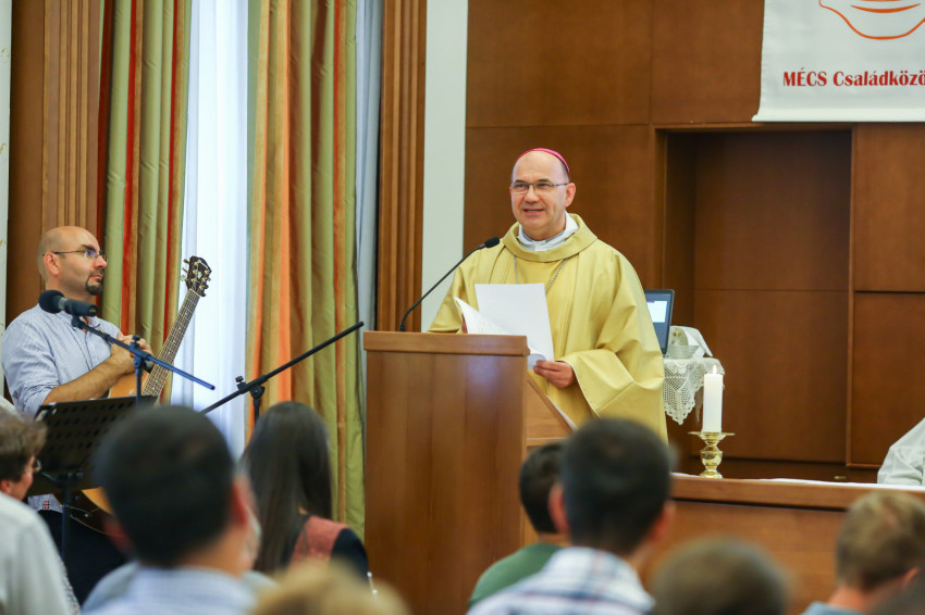 Az evangélium Szent Márk könyvéből hangzott el, a tisztaságról és tisztátalanságról szóló versszakasz (7,1–23). A főpásztor leszögezte: a lelkiségi mozgalmak, közösségek Isten ajándékai, a Tőle kapott tanítás életté váltására. Ezért jött létre negyedszázada Bíró László püspök, Ménesi Balázs és Kriszta összefogásával a MÉCS. „Kedves Püspök atya, Kriszta és Balázs! Hálát adunk most értetek Istennek, és köszönetet mondunk nektek ezért a hatalmas, szép munkáért” – szólította meg a szónok a MÉCS létrejöttében központi szerepet játszó három személyt, egyúttal idézte Bíró László korábbi szavait: „Sok keresztény család érzi: a mai világban igen nagy szükségük van arra, hogy más családokkal megerősítő, baráti közösséget alkossanak. Ezért sok család hoz létre családközösségeket. A MÉCS nekik kínál konkrét segítséget. Régóta bevált beszélgetési módszerük, jól felépített éves tematikáik keretbe foglalják a rendszeres közösségi beszélgetéseket. Hasznos segítségüket szeretettel ajánlom a családközösségeknek és vezetőiknek.”