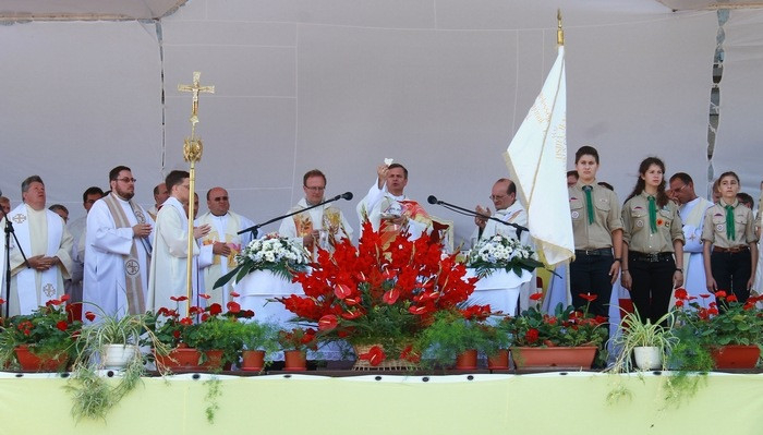 Sok ezren vettek részt a Szatmári Római Katolikus Egyházmegye búcsúünnepén, melyet a hagyományokhoz híven idén is a város főterén, a székesegyház előtt felállított szabadtéri oltárnál ünnepeltek. Az egyházmegye hívein kívül idén kárpátaljai és magyarországi zarándokok is érkeztek a búcsúra Szatmárnémetibe. A szentmise főcelebránsa Schönberger Jenő szatmári püspök, a szónok pedig Forrai Tamás, a Jézus Társasága Magyarországi Rendtartományának provinciálisa volt.