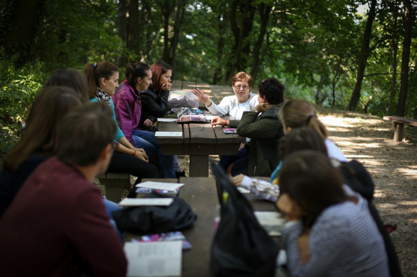 A reggeli imádság és biblia bevezető után a fiatalok kiscsoportokban beszélgettek az Alois testvér által elmondott szempontokról, megadott kérdések alapján.