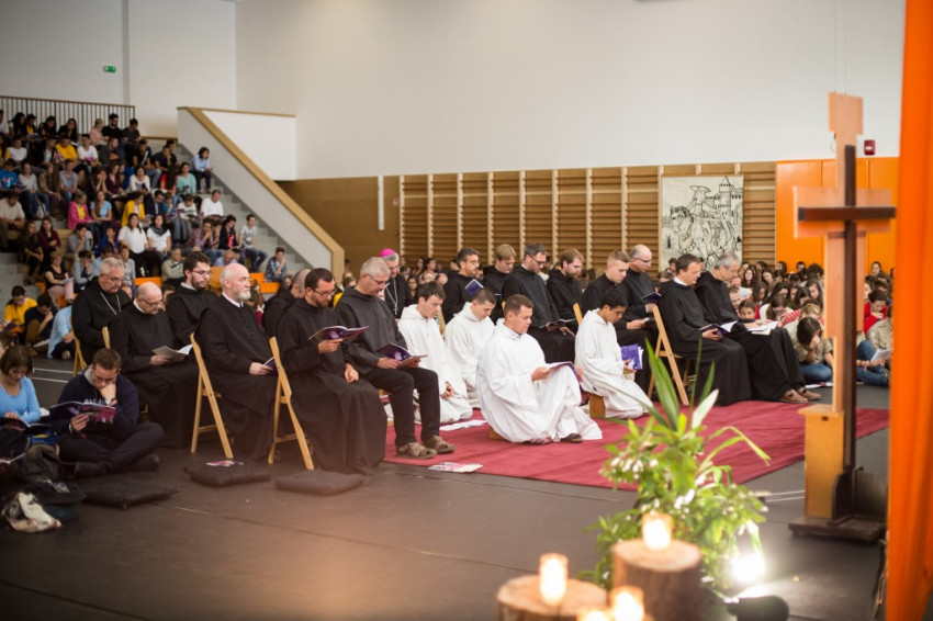 A nap közös imádsággal vette kezdetét, amelynek keretében Várszegi Asztrik pannonhalmi főapát köszöntötte a szerzeteseket, Veres András győri megyéspüspököt, illetve a csaknem hétszáz részt vevő fiatalt. A főapát kiemelte Szent Márton születésének 1700. évfordulóját, majd a találkozó lényegére irányította a figyelmet egy személyes történeten keresztül. Köszöntőjében találkozón való teljes jelenlétre, a szívvel-lélekkel való odaadásra buzdította a diákokat, és arra, hogy érezzék meg az együttlét „ízét”.