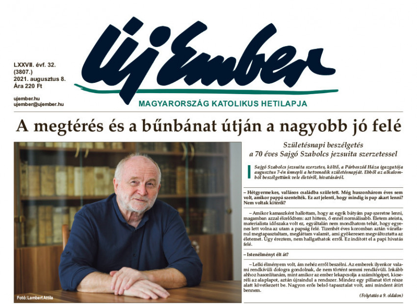 Nem utolsósorban, sőt címlapunk vezető cikkeként pedig A megtérés és a bűnbánat útján a nagyobb jó felé címmel születésnapi interjút közlünk a 70 éves Sajgó Szabolcs jezsuita szerzetes költővel.