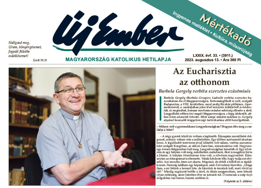Az ezüstmisés Burbela Gergely (Burbela Grzegorz Ludwik) verbita szerzetes huszonhárom éve él Magyarországon. Tartományfőnök is volt, szolgált Budapesten, a VIII. kerületben, most pedig Bicskén plébános. Gyermekkoráról, a családjában jelen lévő missziós lelkületről is kérdeztük, és megtudtuk, honnan van benne minden nehézség ellenére a derű. A budapest-belvárosi Nagyboldogasszony-főplébánia idén ünnepli alapításának 975. évfordulóját. Az 1048-ban létrejött plébánia korábbi bélyegzőjének töredéklenyomatai is őrzik annak emlékét, hogy már csaknem ezer éve létezik keresztény közösség Pesten, a Duna bal partján. Az évforduló alkalmából Osztie Zoltánt, a budapest-belvárosi Nagyboldogasszony-főplébánia-templom plébánosát kérdeztük. Előbbi interjúnkat az 5., míg utóbbit a 9. oldalon olvashatják.