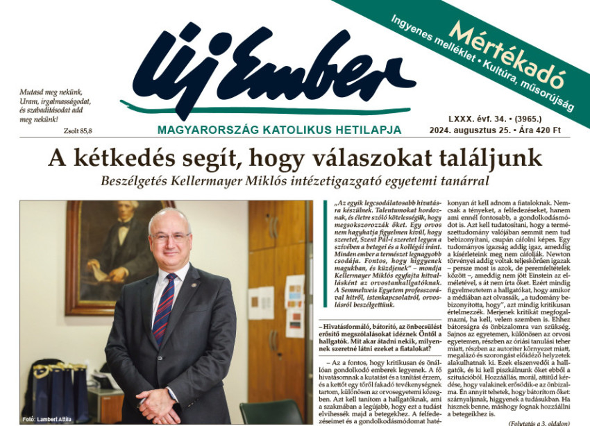 Az e héten megjelenő számukban beszélgetést olvashatnak Kellermayer Miklós intézetigazgató egyetemi tanárral, a Semmelweis Egyetem Általános Orvostudományi Karának volt dékánjával, aki az interjúban egyfajta hitvallásként mondja az orvostanhallgatóknak: „Egy orvos nem hagyhatja figyelmen kívül, hogy szeretet, Szent Pál-i szeretet legyen a szívében a betegei és a kollégái iránt. Minden ember a természet legnagyobb csodája. Fontos, hogy higgyenek magukban, és küzdjenek.”