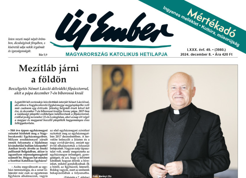 A címoldalon indul interjúnk Német Lászlóval, akit a pápa december 7-én bíborossá kreál. Legutóbb hét esztendeje készítettünk interjút Német Lászlóval, aki akkor a Nagybecskereki Egyházmegye megyéspüspöke volt csaknem egy évtizede. Közel két éve belgrádi érsek és december 7-én bíborossá kreálja Ferenc pápa. November 22-én Leányfalun találkoztunk a főpásztorral, ahol aznap ért véget a magyar és magyarul beszélő püspökök hagyományos éves lelkigyakorlata. Német Lászlót a délvidéki magyarság és a katolikus közösség helyzetéről is kérdeztük.