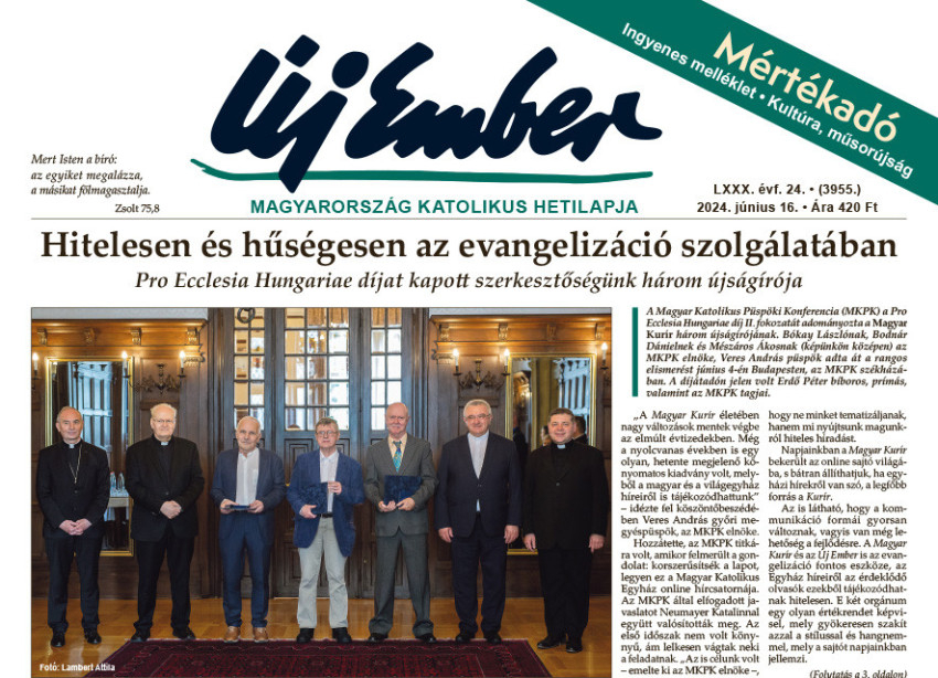 Címlapon adjuk közre az örömteli hírt, hogy Pro Ecclesia Hungariae díjat kapott szerkesztőségünk három újságírója. A Magyar Katolikus Püspöki Konferencia (MKPK) a Pro Ecclesia Hungariae díj II. fokozatát adományozta Bodnár Dánielnek, Bókay Lászlónak és Mészáros Ákosnak.
