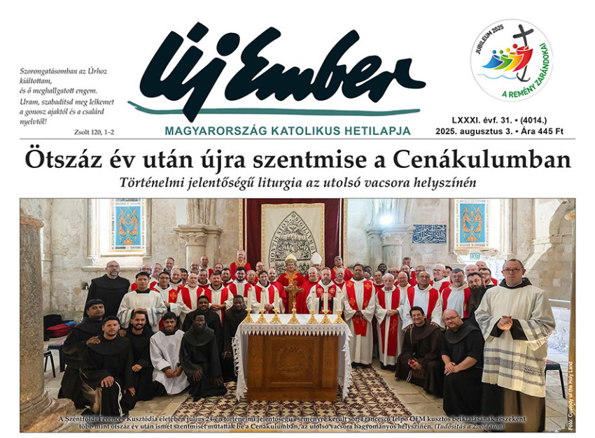 A címlapon adjuk hírül, hogy a Szentföldi Ferences Kusztódia életében július 24-én történelmi jelentőségű eseményre került sor: az új kusztos, Francesco Ielpo OFM beiktatásának keretében több mint ötszáz év után ismét szentmisét mutattak be a Cenákulumban, az utolsó vacsora hagyományos helyszínén. A ferences rend hagyománya szerint a kusztos egyúttal a Sion-hegyi gvardián címet is viseli, ezért beiktatása két kiemelt mozzanatból áll: egy ünnepélyes ingressóból (bevonulás, beiktatás) és egy szentmiséből, amelyet a Cenákulumban mutat be. A hírből kiderül, hogy a kusztost a helyszínen Várnai Jakab OFM, a helyi ferences közösség elöljárója fogadta.