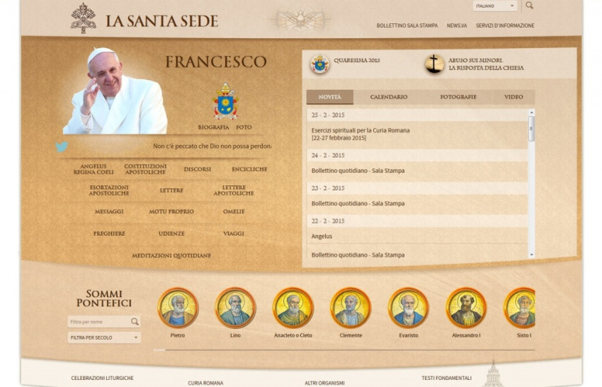 A pápai megnyilatkozások egyébként elhangzásukat követően szinte azonnal hozzáférhetők a Szentszék hivatalos honlapján is. Ezek mellett a honlapon még három másik rovat is található: kalendárium, fotógaléria és a pápa életrajza. A kalendáriumban naptár segítségével lehet kikeresni az egyes pápai tevékenységeket. Aki a korábbi pápákra kíváncsi: II. János Pál és XVI. Benedek pápa megnyilatkozásai és az akkori hivatalos események ugyanígy megtekinthetők.